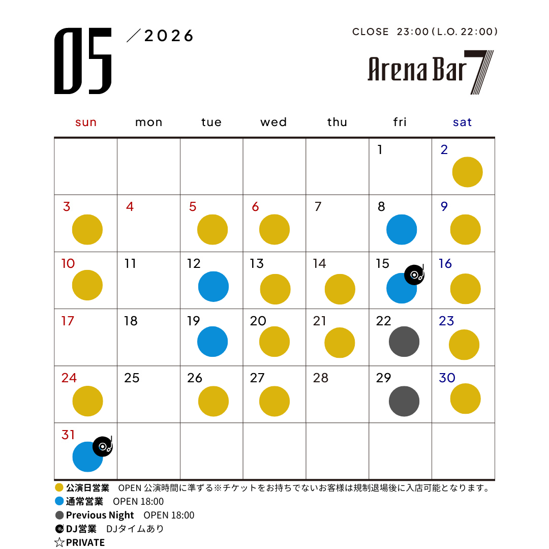 OPEN:18:00 ※公演日は公演時間に準ずる CLOSE:23:00 (L.O.22:00)